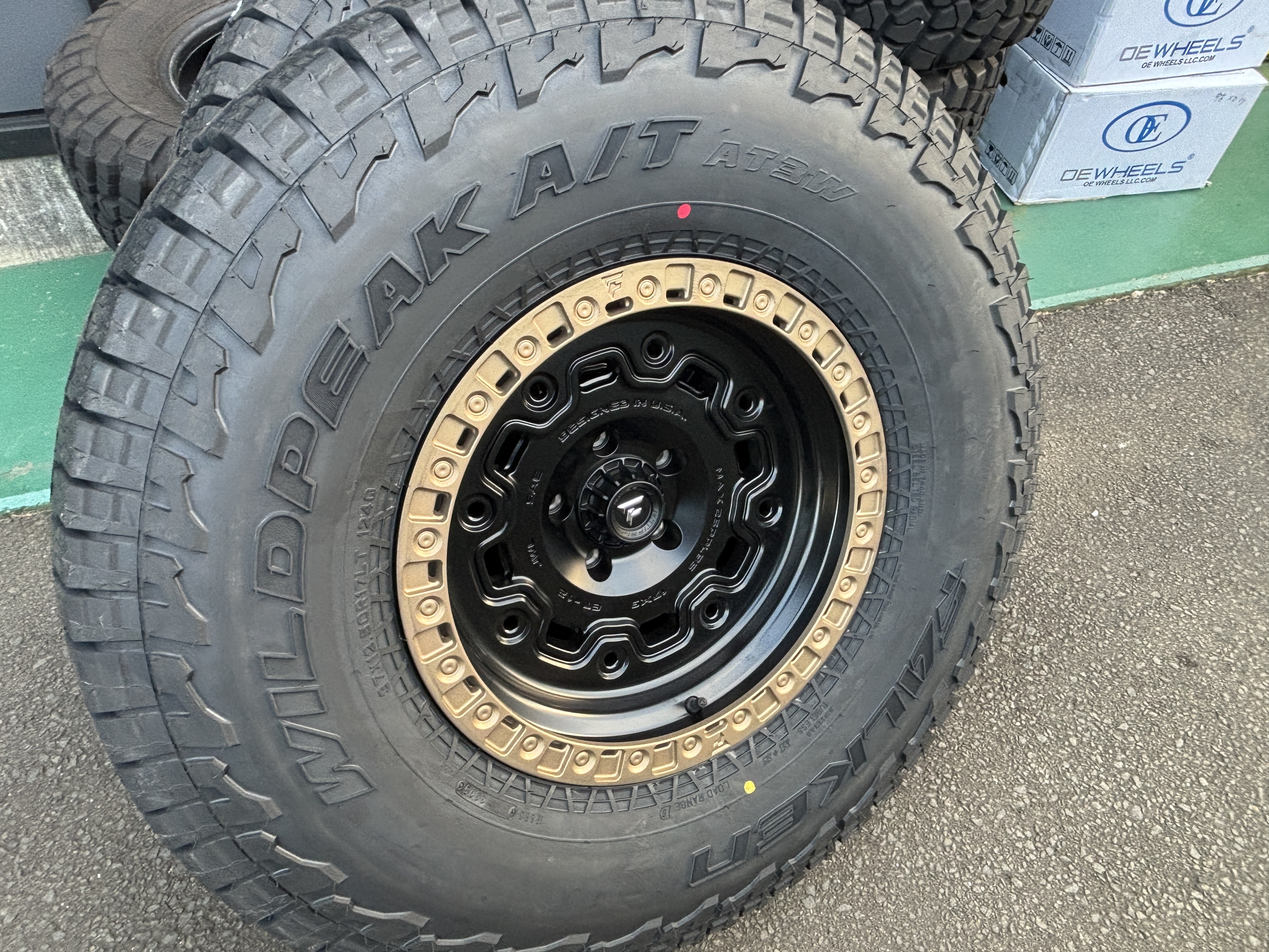 お車のドレスアップを検討されていた中で、「他とは違う足元にしたい」とご相談いただき、写真のような存在感あるブラック×ゴールドカラーのホイールをご提案。メーカーは 今アメリカで人気急上昇中の【Fittipaldi Offroad】いち早く最先端トレンドホイールをご案内させて頂きました。